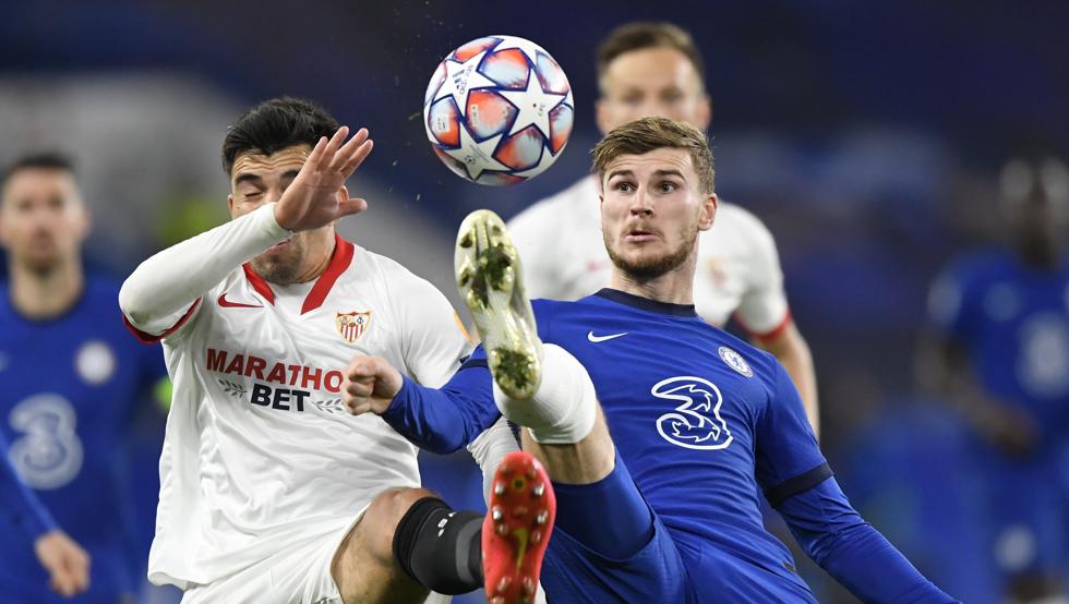 Werner, el punta más temido de los blues, avisó tímidamente en alguna acción, terminando el Sevilla más cerca del área rival antes del descanso, con un buen centro de Acuña y un disparo de Ocampos.