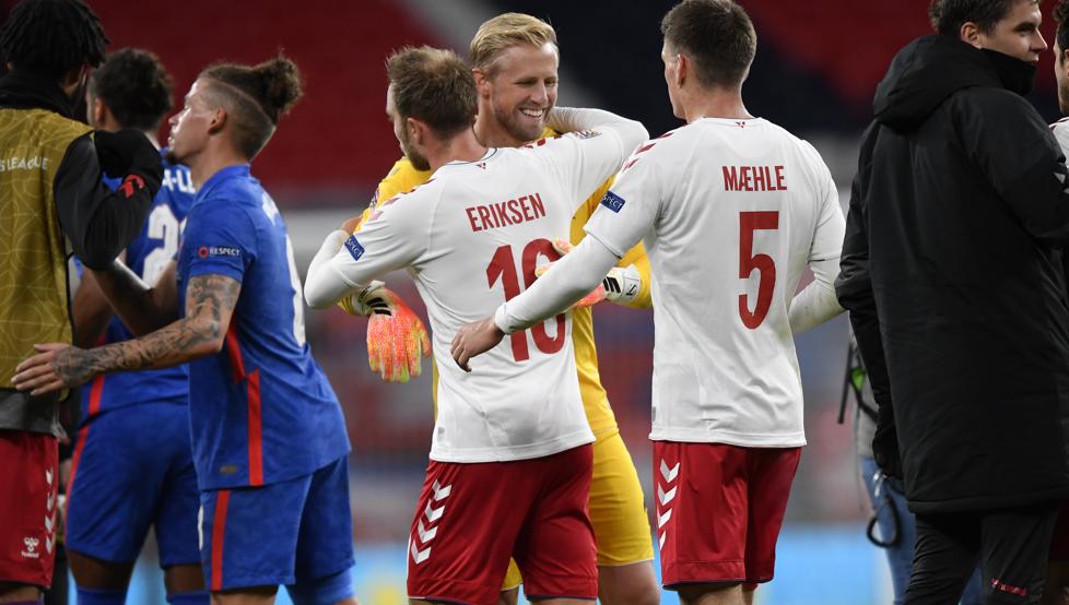 El portero del Leicester fue de lo poco que apareció en la segunda parte para los daneses, salvando con otra manopla una falta lanzada por Reece James.