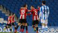El Bilbao Athletic consiguió ir templando el ímpetu de su rival e incluso le sacó de sus casillas para igualar las fuerzas. Vencedor despejó un córner ante Gorostidi, los dos se fueron al suelo y el realista se revolvió propinando una patada al centrocampista. Roja directa. Diez contra diez. Acto seguido, zarpazo de la tropa de Etxeberria. Vencedor inició con un caño en la zona ancha, San Bartolomé dirigió la contra y Guruzeta ejecutó a la perfección.