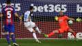 Pronto contestó el Eibar, primero con un remate demasiado cruzado de Kike