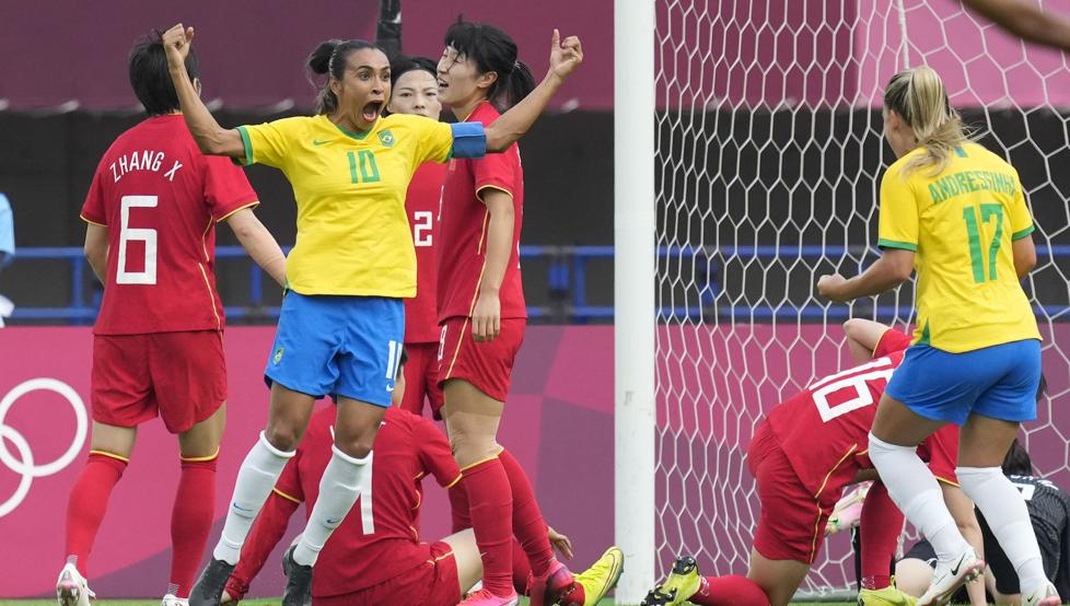 La estrella internacional Marta, seis veces elegida la mejor del mundo, dirigió la demostración de fuerza de Brasil que goleó sin contemplaciones a China, en la apertura del torneo olímpico de fútbol femenino de Tokio 2020.