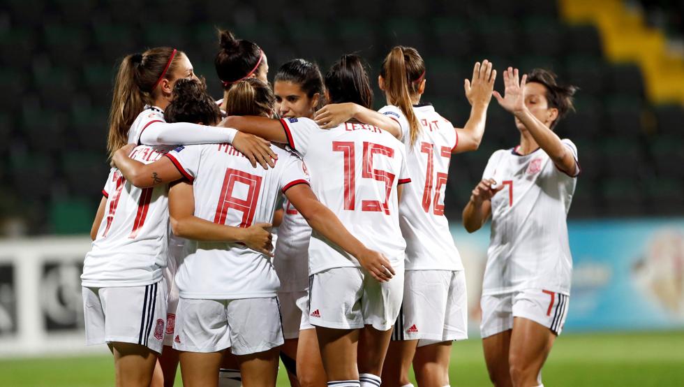 Goles: 0-1, m.6: Lucia García. 0-2, m.10: Sivolobova, propia puerta. 0-3, m.28: Mariona Caldentey. 0-4, m.36: Jenni Hermoso. 0-5, m.38: Lucía García. 0-6, m.40: Alba Redondo. 0-7, m.53: Mariona Caldentey. 0-8, m.76: Patri Guijarro. 0-9, m.81: Mariona Caldentey de penalti.