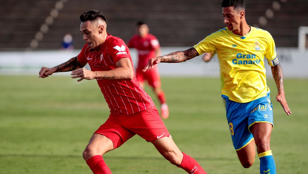 El Sevilla llevó el peso del partido en la primera mitad, con un Dmitrovic, hasta ahora el único fichaje, totalmente inédito. Un cabezazo de Rekik y un remate solo del joven Pedro Ortiz fueron las ocasiones más claras para los andaluces, que en la segunda parte, con el rosario de cambios, se vieron más veces superados por los canarios, sobre todo por el empuje que pusieron arriba Claudio Méndez y Peñaranda, que no obstante se encontraron con la figura de Bono. Un remate del primero lo sacó el marroquí antes del tanto del Sevilla, un disparo bien colocado junto al palo de Johansson en el minuto 57.