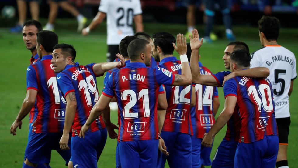 Eibar, 1: Dmitrovic; Correa, Bigas, Oliveira, Cote; Pedro León (Cristóforo, m. 73), Escalante, Expósito, Orellana; Kike García 8Sergio, m. 92) y Charles (Enrich, m. 73).