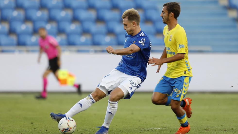 El Real Oviedo frenó su mala racha con un brillante triunfo ante la UD Las Palmas (1-2), en una exhibición al contragolpe y con doblete del argentino Nahuel Leiva.