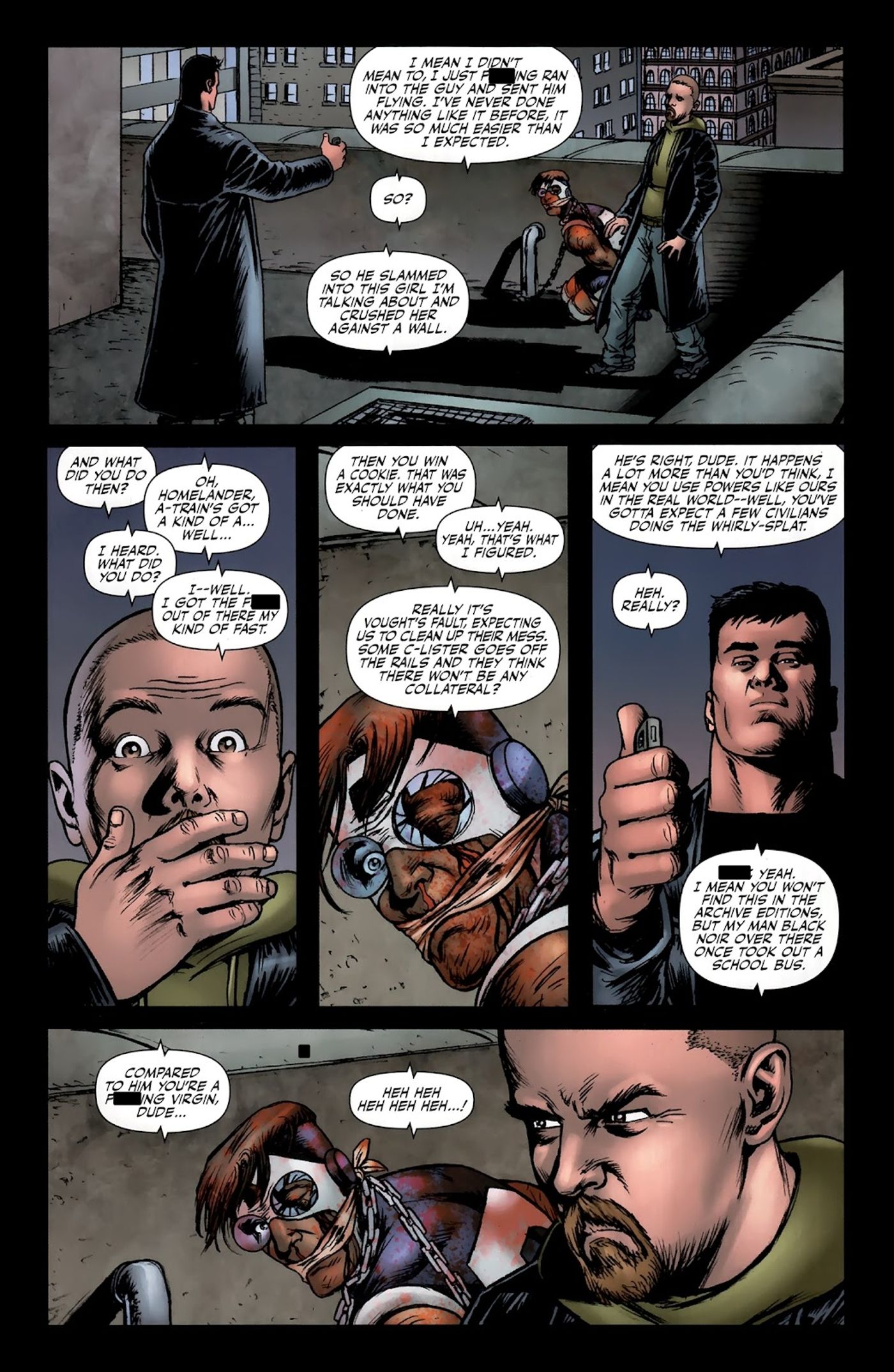 Pero había más para Los chicos’ primera muerte, y pone la muerte prematura de Robin bajo una luz nueva y terrible. En Los chicos #63 por Garth Ennis y Russell Braun, Billy Butcher secuestró a A-Train y se lo presentó a Hughie. Butcher quiere que Hughie finalmente vea su punto de vista sobre lo irredimibles que son los Supes, y para probar su punto juega una conversación que A-Train tuvo con los Siete después del incidente de Robin. En la cinta, A-Train revela que el Supe con el que luchó era en realidad uno de los Vought-American que se había vuelto loco. A-Train y Homelander hablan cruelmente sobre Robin, llamándola ‘colateral’ diciendo que debería esperarse cuando los Supes usan sus poderes en el mundo real.