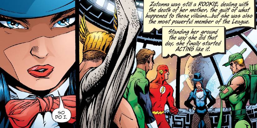 La idea de que, incluso como héroe novato, Zatanna era el miembro más poderoso de la Liga de la Justicia es una afirmación interesante, pero se ve confirmada por los acontecimientos de Crisis de identidad. Si bien Superman, Wonder Woman y Flash pueden detener a los villanos en el momento, Zatanna pasó años reconfigurando sus mentes para hacerlos menos peligrosos a largo plazo. Sumado a la capacidad de teletransportarse, invocar demonios, curar a voluntad, cambiar de forma a personas y objetos, congelar el tiempo y volverse invisible, está claro por qué Barry Allen pensó tanto en el nivel de poder de Zatanna.