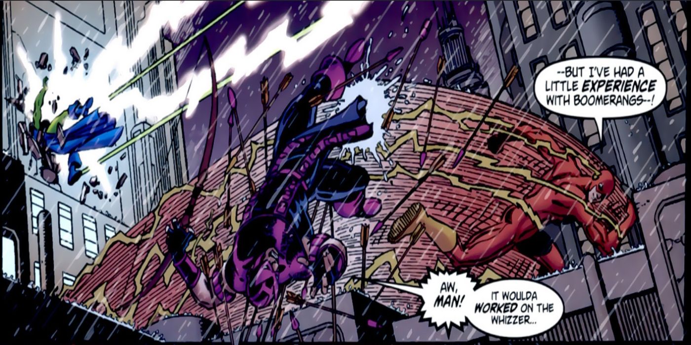 La experiencia de Flash con el Capitán Boomerang le permitió evadir fácilmente las flechas engañosas de Hawkeye