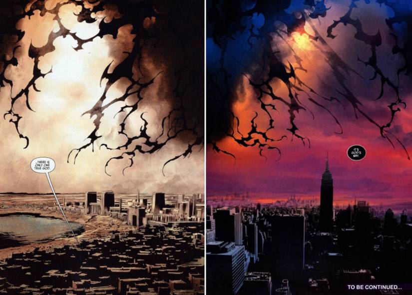 Más tarde, la historia explica que Zeus destruyó a Hulk no fue una cuestión de poder físico: Hulk se enfrentó a Zeus en el Monte Olimpo, un lugar donde su poder divino está en su apogeo y las leyes de la realidad esencialmente siguen sus órdenes. Los dioses tienen una habilidad única para lastimar a Hulklo que podría explicar cómo el Vacío lo dañó tanto. En Brian Michael Bendis, Mike Deodato Jr., Rain Beredo y Cory Petit’s Vengadores Oscuros #13se sugiere fuertemente que el Vacío es el Ángel Bíblico de la Muerte.