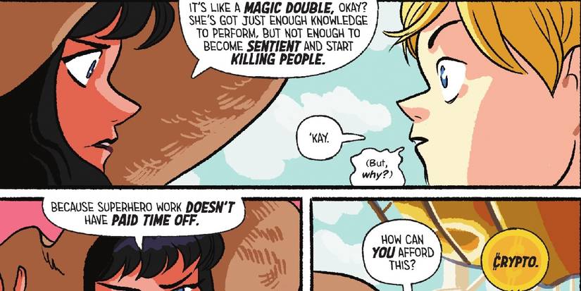 Aclarando que el doble tiene “el conocimiento suficiente para actuar, pero no lo suficiente para volverse consciente y comenzar a matar gente”, Harley pregunta rotundamente por qué Zatanna necesitaría hacer esto. Zee respondió con un conciso “Porque el trabajo de superhéroe no tiene tiempo libre remunerado”, y agregó “O pagar”. para recalcar esta situación. Al decir que es exactamente el mismo espectáculo que ella misma realizaría en el escenario, Zatanna confirma que técnicamente no está incumpliendo ningún contrato, pero por razones obvias, preferiría que Harley no le contara la verdad a nadie, permitiéndole relajarse en paz.