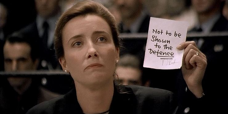 Antes de que Daniel Day-Lewis se retirara, una de sus mejores películas fue En el nombre del padre. Pero debido a su papel protagónico, su coprotagonista, Emma Thompson, no recibe suficiente crédito. Thompson interpreta a una abogada que defiende a cuatro hombres que fueron falsamente acusados de detonar bombas colocadas por el IRA en Guildford en los años 70, y obtuvo una nominación a Mejor Actriz de Reparto por ello en 1993.