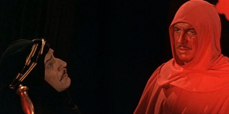 Vincent Price es el campeón indiscutible de los actores de terror y nunca deja de ser entretenido. Su rango va desde cursi hasta horroroso, pero aunque la mayoría lo conocerá por Casa en la colina encantada, es Roger Corman Máscara de la Muerte Roja que realmente usa todos sus talentos.