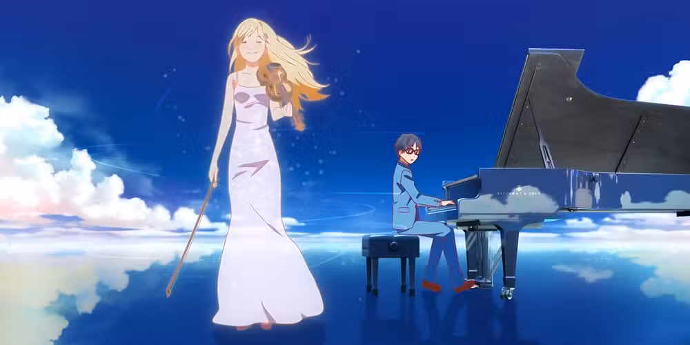 Durante la mayor parte de la historia Tu mentira en abril disfraza la angustia como despertar artístico. Kousei, que alguna vez fue un prodigio de piano, pierde a su madre y se encuentra a la deriva. Es decir, hasta que conoce a Kaori, un violinista que recorre su pasión por la música. El comienzo está marcado por coloridas actuaciones musicales, pero también sugiere una tragedia.