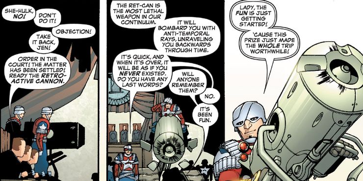 Nada confunde peor al cerebro humano que una buena paradoja del tiempo a la antigua, que hace que el Cañón Retroactivo de la Autoridad de Variación del Tiempo, o “Ret-Can” para abreviar, sea un arma tan poco práctica. Incluso si tal dispositivo existiera en el mundo real, las ramificaciones de su uso serían sin duda desastrosas.