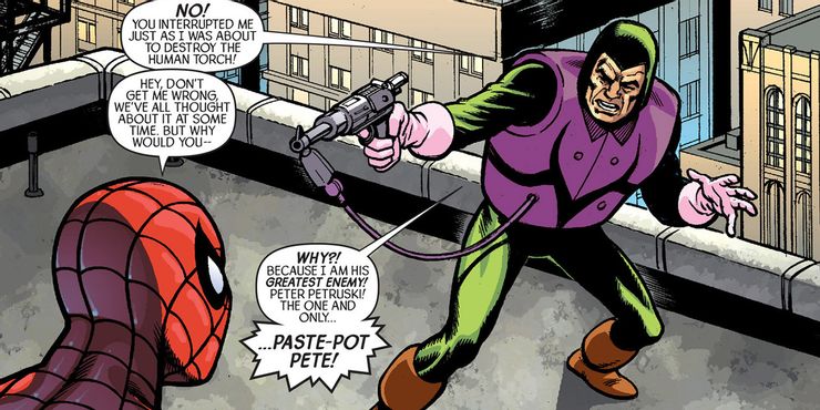 Nada dice “impracticable” como el Paste-Gun usado por Trapster. El arma fue conceptualizada en la década de 1960 (naturalmente) para Cuentos extraños # 104, pero ha hecho otras apariciones. El arma dispara una corriente de pegamento a prueba de fuego que se endurece instantáneamente y puede incapacitar a los objetivos, formar muros defensivos o obstruir varias máquinas.