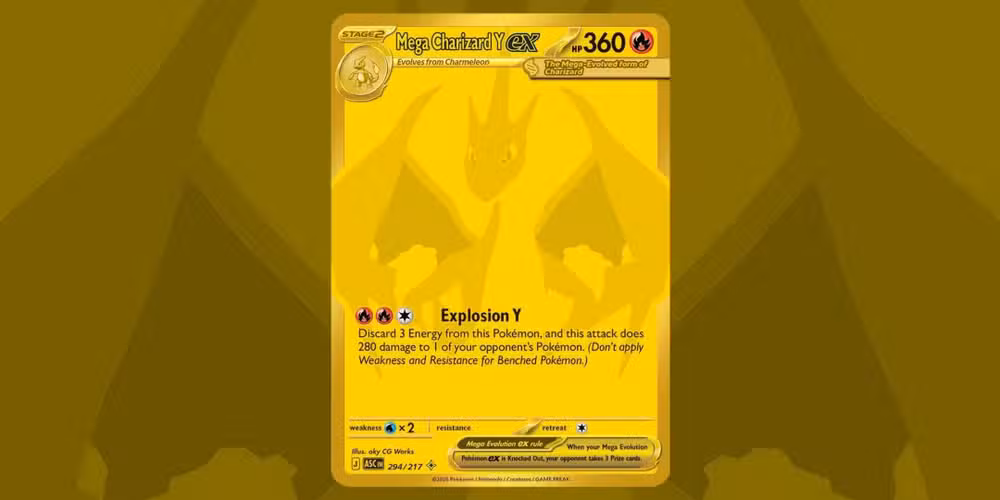 La edición Gold de Mega Charizard Y ex en el set japonés Cubierta inicial 100 es una de las cartas más valiosas de ese conjunto. Aunque es diferente a la versión Mega Hyper Rare de Mega Charizard Y ex que vemos en inglés. Héroes ascendidos, Esta sigue siendo una de las cartas de persecución más populares..