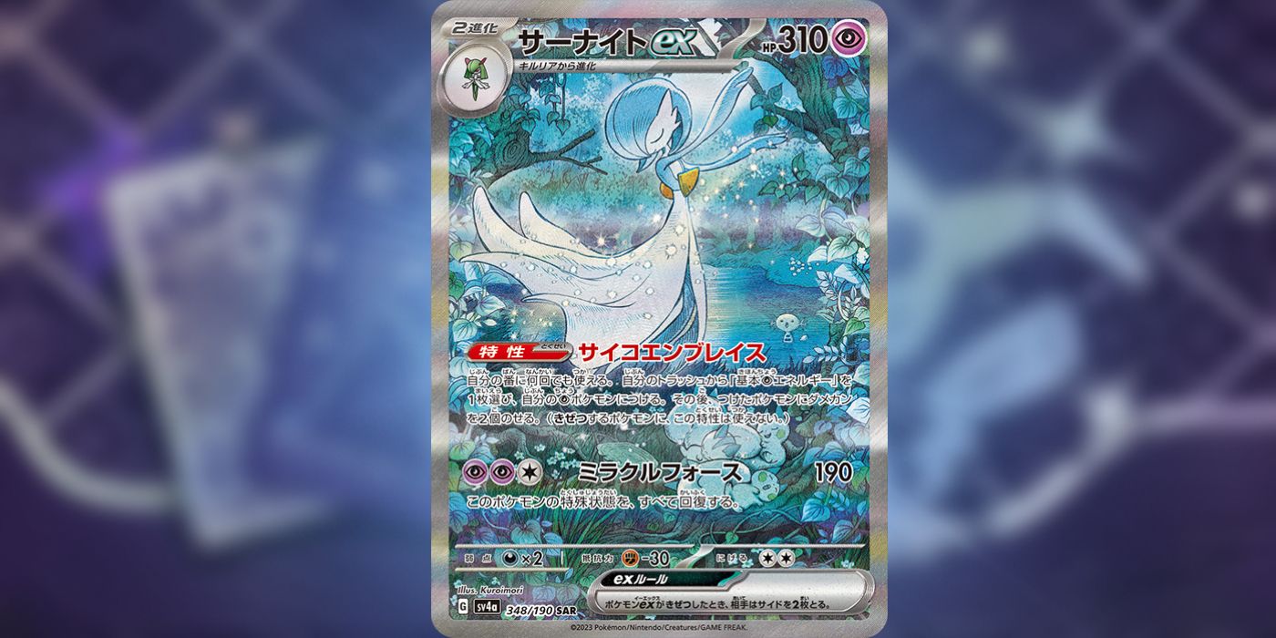 La versión rara con ilustración especial de Gardevoir ex es una tarjeta única. Esta pieza destaca un Shiny Gardevoir bellamente ilustrado.. Esta criatura parece en paz, bailando suavemente en el bosque. Pero los Pokémon no son lo único destacado. Todo el conjunto en torno al baile de Shiny Gardevoir está bien detallado.