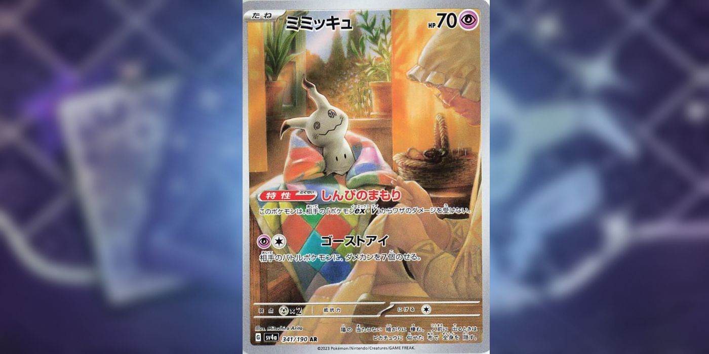 La versión Illustration Rare de Mimikyu es una delicia absoluta y una de las cartas más destacadas del próximo. JCC expansión. Se ve al Pokémon de tipo Fantasma y Hada favorito de los fanáticos relajándose encima de una colcha, mientras un humano teje junto a él. Esta carta gana aún más valor si se considera el hecho de que este Mimikyu es Shiny..