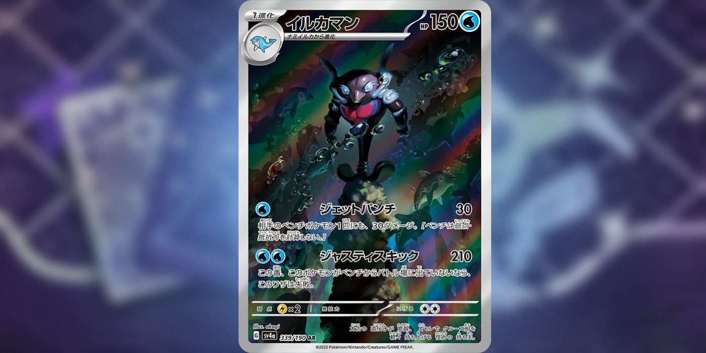 Posiblemente la carta más notable de toda la colección, la versión Illustration Rare de Palafin será una pieza muy buscada del próximo set. El arte completo muestra un palafín variocolor en su forma de héroe, posando como el gobernante de su especie..