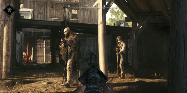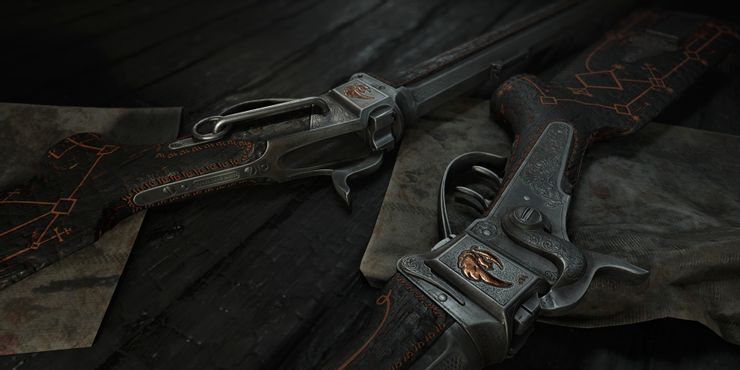 El DLC Crossroads es uno de los pocos DLC de Caza: Enfrentamiento eso no incluye a ningún cazador legendario. En cambio, cuenta con cuatro diseños de armas únicos: uno para el Mosin Avtomat, uno para el Nitro Express Rifle, uno para el Dolch 96 y, lo más importante, uno para Bomb Lance, uno de los pocos diseños disponibles para él. Estas pieles son especialmente hermosas debido a sus vibraciones aristocráticas y las texturas plateadas que las cubren.