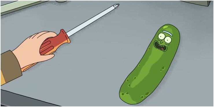Debido a su naturaleza egocéntrica y tendencias nihilistas, Rick se las arregla para ser ligero y juguetón en situaciones que son terribles tanto para él como para los demás. Esta broma proviene de una escena en la que Rick de una dimensión alternativa está torturando al Morty principal mientras mantiene prisionero al Rick principal.