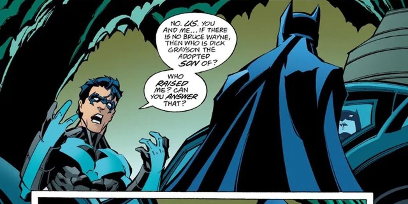 “/> A menudo se debate quién es el verdadero Batman: la máscara o el hombre detrás de ella. Las historias cruzadas “Bruce Wayne: ¿Asesino?” y luego “Bruce Wayne: Fugitive” destacó lo importante que es el Bruce Wayne humano para equilibrar al héroe Batman. Cuando el propio Batman comenzó a sugerirle a su familia que Bruce Wayne siempre fue su verdadera máscara, Nightwing cuestionó esa teoría, rogándole que respondiera una pregunta contundente pero necesaria: “Si no existe Bruce Wayne, ¿de quién es hijo adoptivo Dick Grayson?“. Si alguien entiende la dualidad de Batman y la importancia de esa dualidad, es su primer hijo adoptivo, Dick Grayson.
