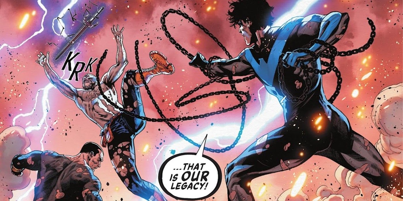 “/> Crisis oscura El número 7 es monumental en el desarrollo del personaje de Nightwing, y el personaje se destaca especialmente durante la batalla final contra Deathstroke. Deathstroke despotrica sobre cómo la nueva generación de héroes y villanos no merece seguir los pasos de la vieja guardia, ni merecen el tiempo de los héroes más antiguos. “No seguimos los pasos de nadie” Nightwing interviene, poniendo fin a la historia revisionista del villano con un resumen perfecto de cómo opera el heroísmo en todas las épocas. “Todos caminamos juntos. No importa el mundo o la generación, abrazamos nuestra historia junto con lo nuevo para llevar esperanza a todos. ¡Ese es nuestro legado!”
