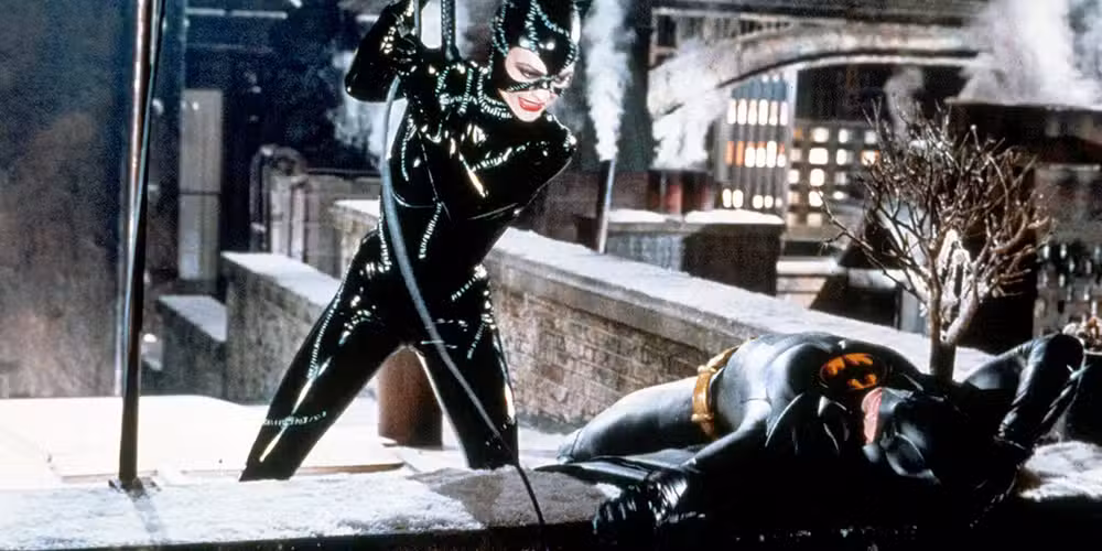 Cuando Batman y Catwoman se enfrentan por primera vez en los tejados de batman regresaCatwoman (Michelle Pfeiffer) entrega una gran proclamación. Después de jugar con Batman y tirarlo del tejado, ella lo atrapa con su látigo. Ella se burla “La vida es una puta, ahora yo también”.