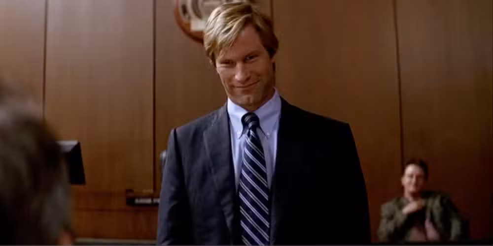 En el punto de referencia El caballero oscuroHarvey Dent (Aaron Eckhart) lanza su característica moneda de dos caras durante una escena en la sala del tribunal y la usa para decidir si él o Rachel Dawes deben tomar el caso. Cuando la moneda cae en su dirección, sonríe y dice: “Yo hago mi propia suerte”. Al principio, es una encantadora muestra de confianza.