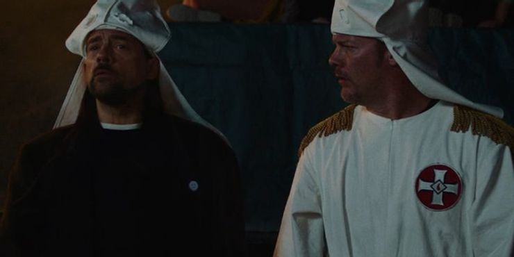 Empieza a recitar referencias aleatorias de la cultura pop como: “Vengo del centro. Estoy aquí por Mitch y Murray “. Un miembro del Klan pregunta enojado: “¿Quiénes demonios son Mitch y Murray?” Es un oscuro guiño a Glengarry Glen Ross eso confunde al Klan el tiempo suficiente para que Jay salve a todos y escapen.