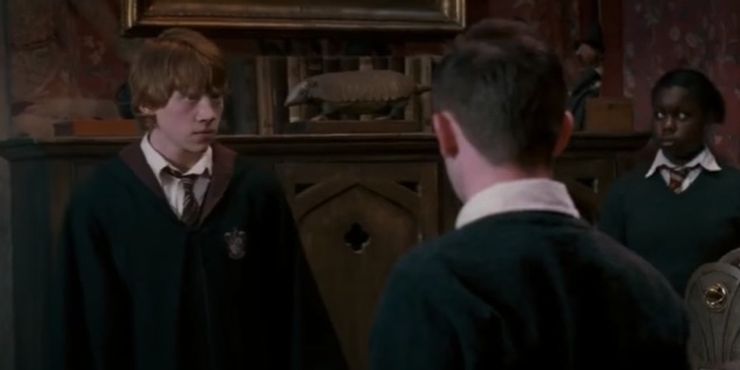 Ron entró para ver a Harry en una discusión y se interpuso en la conversación para defender a su mejor amigo. Era significativo por el hecho de que nadie más había acudido en ayuda de Harry, sin embargo, Ron se interpuso para enfrentarse a toda la sala común de Gryffindor y reclamar su inquebrantable lealtad a Harry.