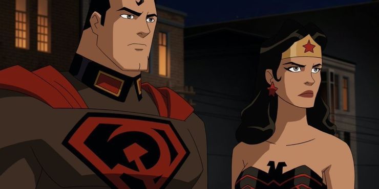 Basado en la novela gráfica única Superman: hijo rojo donde Superman se crió en la Rusia soviética, esta película animada vio muchas versiones retorcidas de héroes queridos y villanos clásicos. Pero a pesar de este universo alternativo, Diana se mantuvo fiel a su personaje a pesar de su decepción porque el mundo de los hombres entra en otra guerra.
