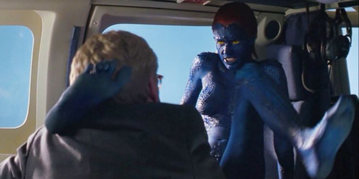 Debido a que la mutación de Charles (leer y controlar mentes) es “invisible”, Mystique siente que nunca podrá comprender su lucha por aceptar su verdadera forma. Puede ocultar quién es realmente, mientras que Mystique debe estar siempre usando su habilidad mutante para imitar a otras personas y parecer “normal”. Es un evento agotador, uno que abandona rápidamente más adelante en la película.
