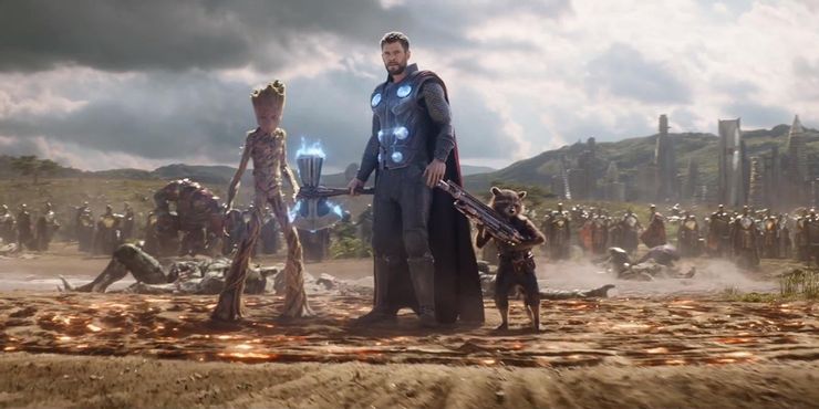 Como toda esperanza parecía perdida durante la Batalla de Wakanda, Thor llegó con una entrada atronadora acompañado de Rocket Raccoon y Groot. En el punto de inflexión de la batalla, Thor se abre paso fácilmente a través del ejército de Thanos con un solo pensamiento en mente: “¡Tráeme a Thanos!”.