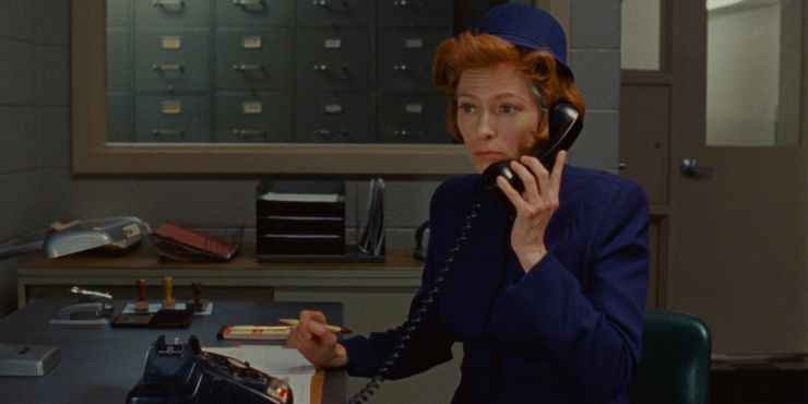 Icy Hollywood y la diosa del cine independiente Tilda Swinton tiene una alta facturación en El despacho francés. Interpreta a JKL Berensen, escritora de la revista French Dispatch.