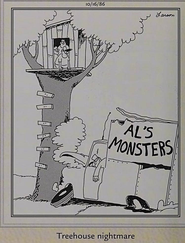 Hable sobre la “casa del árbol del horror” original. En esto Lado lejano cómic, un “Monstruos de Al ” El camión se estrella contra un árbol, que contiene una casa en el árbol, con un grupo de niños luchando para ver lo que acaba de pasarcon la implicación de que lo que sea “pesadilla“Cargo El camión estaba transportando está a punto de desatarse.