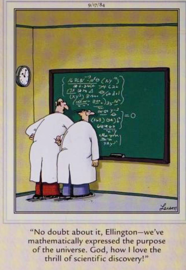 Además, el enlace aquí es temático. Ambos El lado lejano y Los Simpsons abrazó el caos de la vida, dando sentido, en cualquier medida posible a través del humor. A menudo, humor negro. Este panel, en el que Los científicos se maravillan de “la emoción del descubrimiento científico“Después de probar matemáticamente, la existencia no tiene sentidose siente como uno que Los Simpsons‘La sala de escritores habría apreciado.