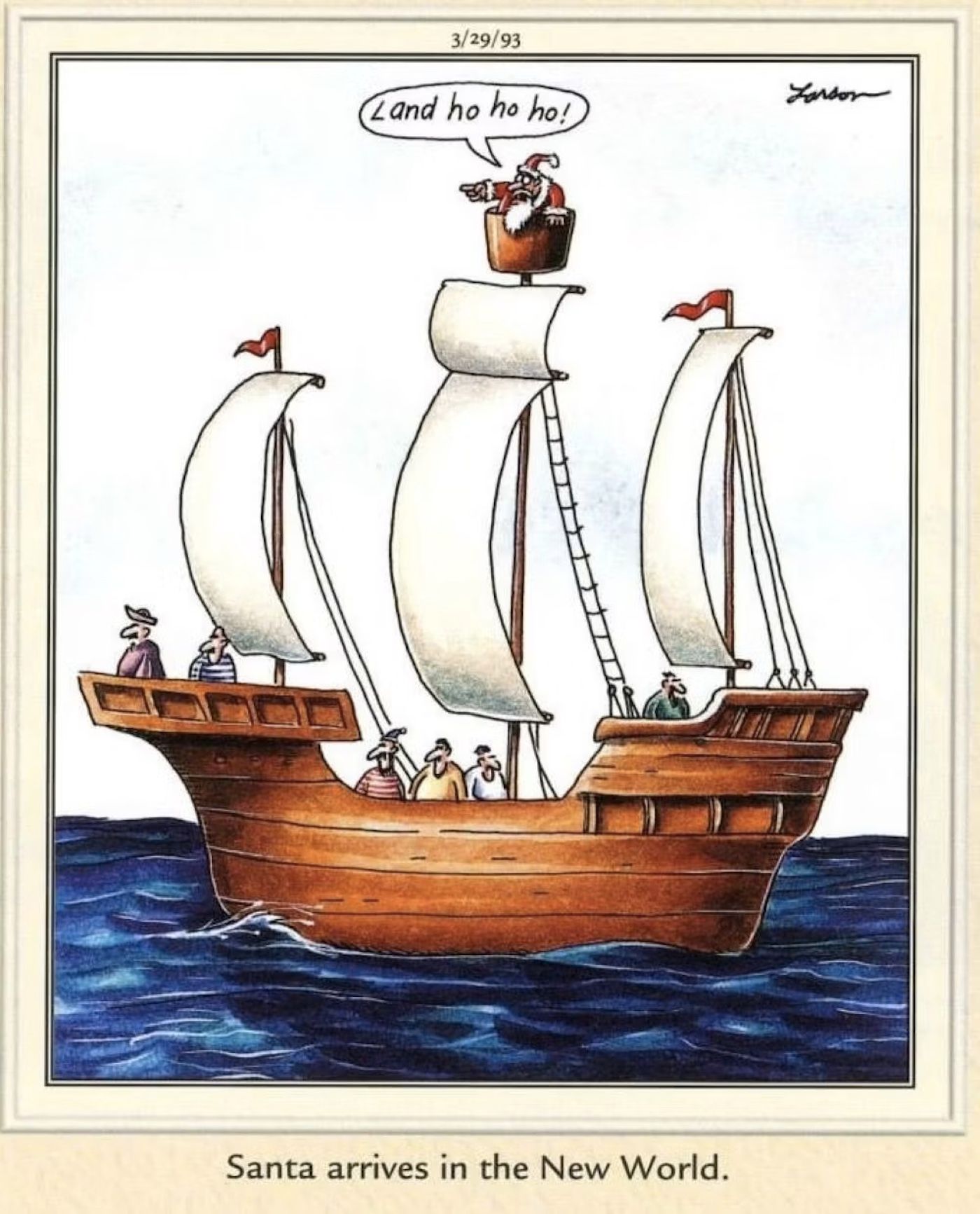 “/> A veces un Lado lejano aparece que es simplemente la broma más tonta que alguien haya hecho jamás, y “Santa Arrives in the New World” puede ser el mejor ejemplo de este tipo de humor. Tenga en cuenta que la fecha de publicación es tres meses después de Navidad, por lo que no hay excusa para la total falta de sentido que tiene esta broma. No, de hecho, Santa siempre habría sabido sobre el Nuevo Mundo porque visita a todas las familias del mundo para llevarles regalos en Navidad. El sorteo aquí para Larson sería la oportunidad de que Santa dijera: “Tierra ho ho ho”, que es una broma terriblemente obvia.