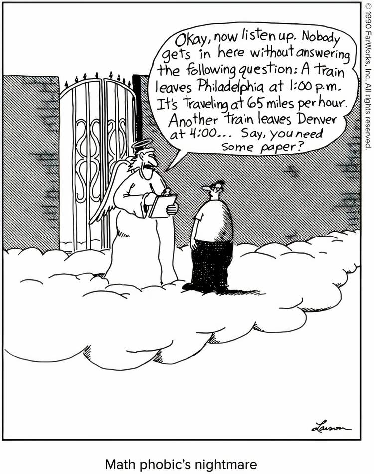 Resulta que en The Far Side, realmente no importa si alguien es una persona moral o religiosa en la vida para llegar al cielo, solo tiene que ser bueno en matemáticas.