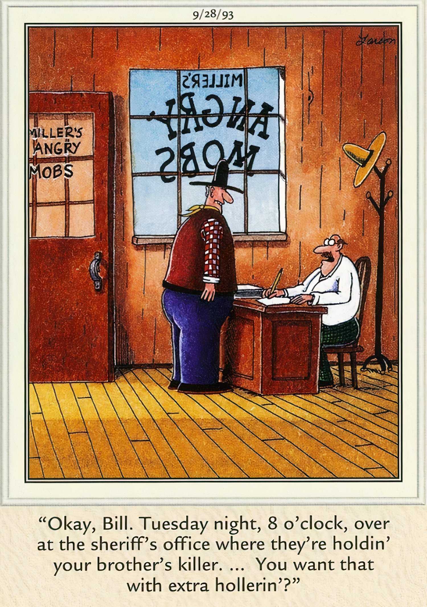 Es cierto, El lado lejano Puede hacer algo divertido, incluso algo tan grave como disturbios, turbas y calamidad absoluta. La obra de Gary Larson tocó a muchos sujetos en su tiempo, desde la naturaleza hasta el crimen e incluso el tema grave de la muerte. Pero El lado lejano Siempre logró ver el lado más ligero de todo.