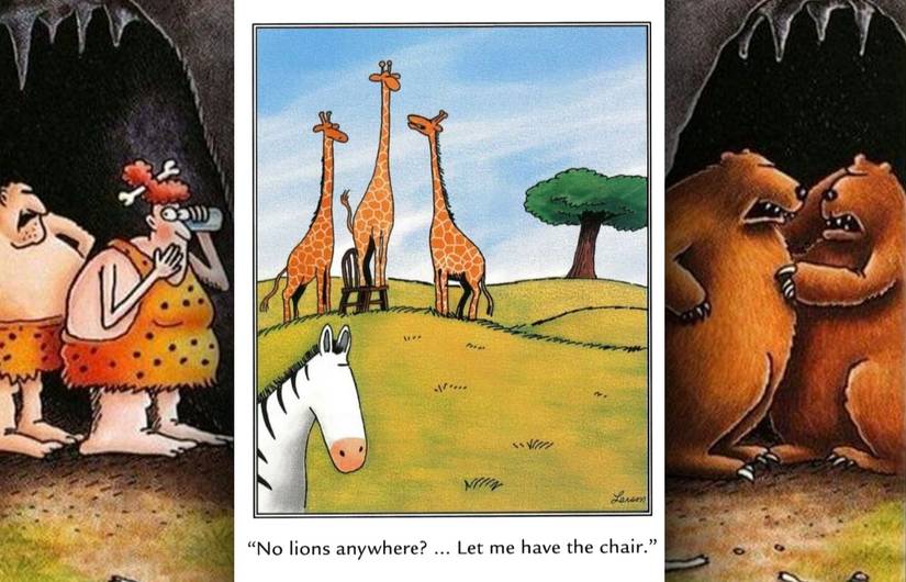 En cualquier Lado lejano Comic, se debe esperar lo absurdo. Una jirafa que aumenta su altura con una silla es una imagen indudablemente absurda, y muestra cuán divertidos pueden ser estas caricaturas sin recurrir a extremos mórbidos. Todo lo que se necesita es un animal en una situación ridícula para provocar la risa.