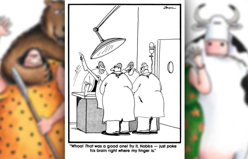 Desde neurocirugía de descuento hasta dinosaurios de cerebro reptiles, el lado lejano se centra en la materia gris en algunas de sus mejores y más inteligentes bromas.