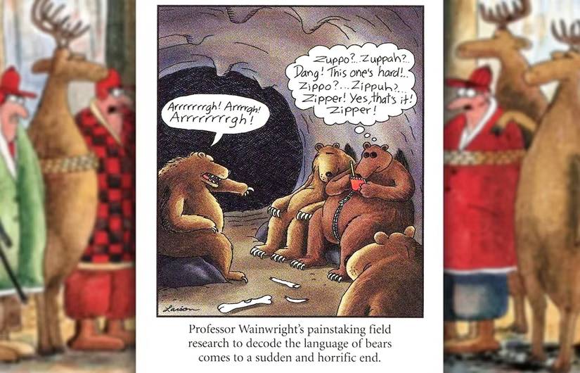 En esta franja, un zoólogo usa un disfraz de oso para vivir entre los animales, incluso logrando aprender aspectos de su idioma. Lamentablemente, lo que no se da cuenta, pero el lector hace es que su disfraz estaba expuesto gracias a la cremallera brillante del disfraz. Lamentablemente, es poco probable que los hallazgos de este científico dedicado lleguen al mundo exterior. A Larson le encanta enfrentar a los osos contra los humanos, a menudo burlándose de la humanidad por aventurarse arrogantemente en el territorio de las máquinas de matar peludas. Abra la galería de imágenes a continuación para más Lado lejano Los cómics que muestran a los osos que se enfrentan a los humanos.
