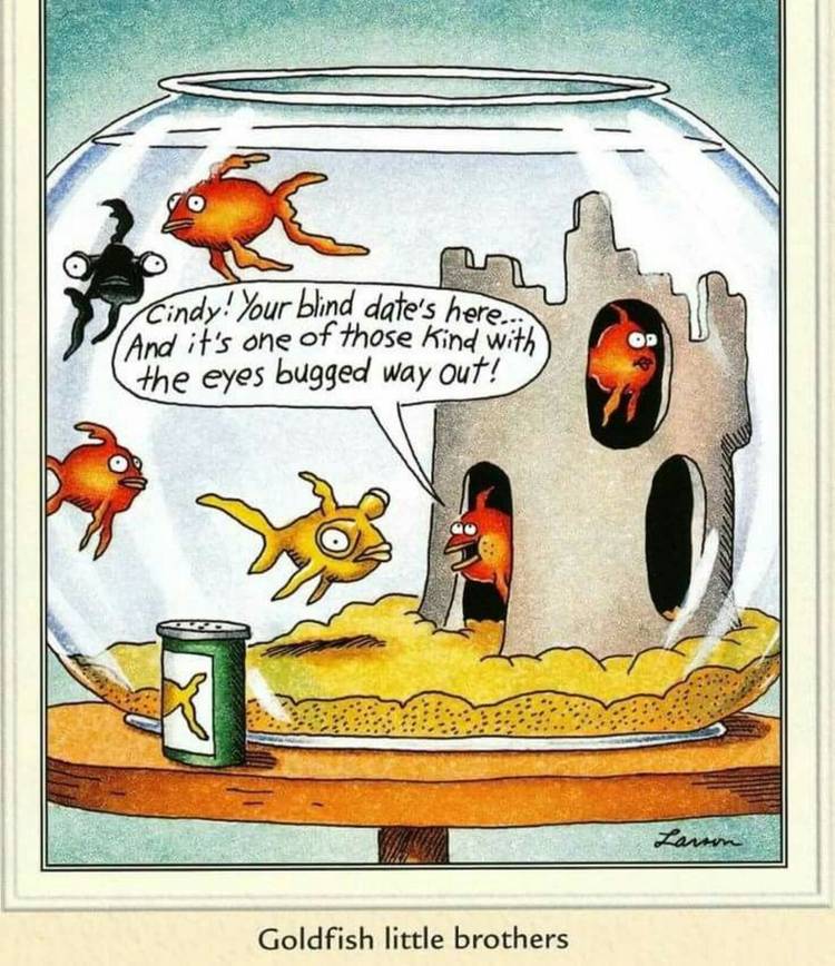 Los hermanos pequeños, repartidos o de otro tipo, parecen hacer que sea su trabajo pasar un momento difícil a la fecha de su hermana, un concepto universal según El lado lejano. Además, tener ojos con buggy es una cualidad destacada tanto para los peces como para los humanos, algo que los peces dorados en esta tira cómica hacen muy claro, incluso si está justo en frente de la fecha en cuestión. Con suerte, el pescado de ojos con buggy tiene una piel gruesa para manejar a estos hermanos pequeños de peces dorados.