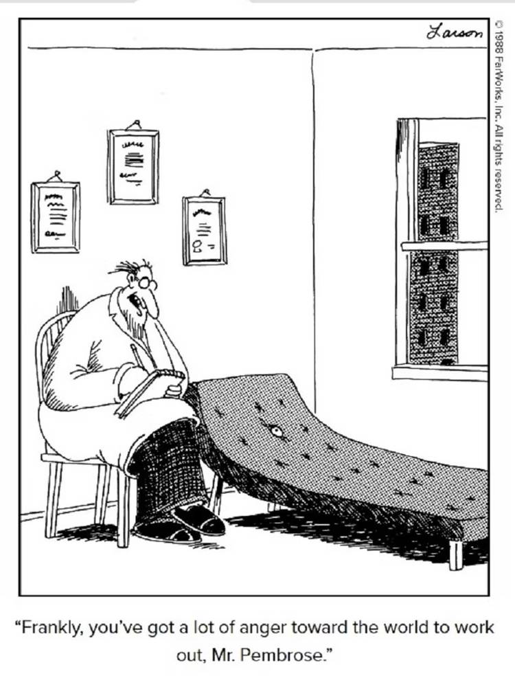 No hay vergüenza en hablar con un terapeuta, pero este Lado lejano Strip definitivamente tendrá a algunas personas adivinándose a sí mismas. Aquí, un médico está hablando con un paciente suyo, diciéndole ‘Sr. Pembrose ‘que necesita dejar ir su ira. El problema es que no hay Pembrose, solo el médico que habla con un sofá vacío. ¿Está hablando solo en tercera persona? ¿O realmente percibe a otra persona allí con él? Todos confían en que las personas que los rodean son reales, pero cuando esa ilusión está destrozada como si estuviera aquí, las cosas se ponen raras.