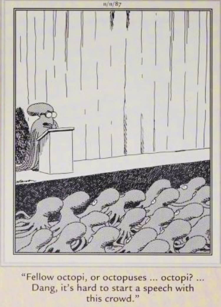 Hay una razón por la que hablar en público es uno de los mayores temores entre las personas. Después de todo, ¿quién quiere hacer un error y accidentalmente decir lo incorrecto? El lado lejano lisó este miedo de una manera cómica Al tener un pulpo, dale un simposio a su especie. Desafortunadamente, al igual que la mayoría de la gente está confundida sobre cuál es la forma plural de ‘pulpo’, el orador admite que no tiene idea de si debería usar pulpos o pulpos. Es un escenario dolorosamente real y uno no tiene que ser un pulpo para simpatizar con estar en una posición tan desafortunada.