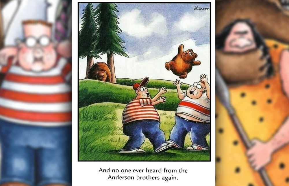 Los Anderson juegan libremente con un cachorro de oso bebé, sin darse cuenta de que el oso mamá les mira a lo lejos. La leyenda implica que los Anderson probablemente fueron comidos por el oso protector más antiguo en otro Lado lejano Comic acerca de ser comido, que es uno de los gags más sorprendentes que tiene Gary Larson.