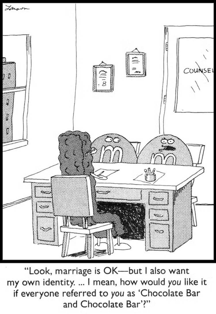 Muchas parejas enfrentan luchas de identidad después de casarse debido al deseo de permanecer fieles a sí mismos y a sus propias vidas y, al mismo tiempo, ser una pareja capaz de hacer concesiones. Aparentemente, los clásicos dulces M&M también tienen estos problemas matrimoniales, pero sigue siendo una forma extraña para que la gente se relacione con un dulce famoso.