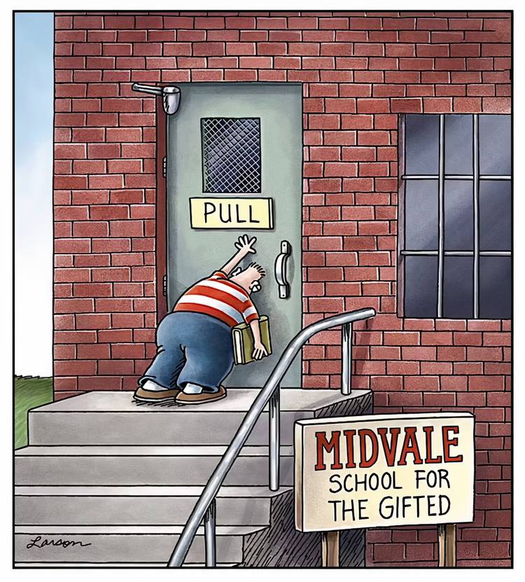 Esta no sería una lista adecuada de regreso a la escuela sin uno de los más icónicos Lado lejano Los cómics alguna vez impresos. La tira presenta la mascota no oficial del universo de Larson empujando una puerta etiquetada “jalar.” Mientras que la mordaza funciona como humor visual clásico, la broma llega más profunda gracias a una señal perfectamente ubicada que eleva la ironía del cómic al estatus legendario.