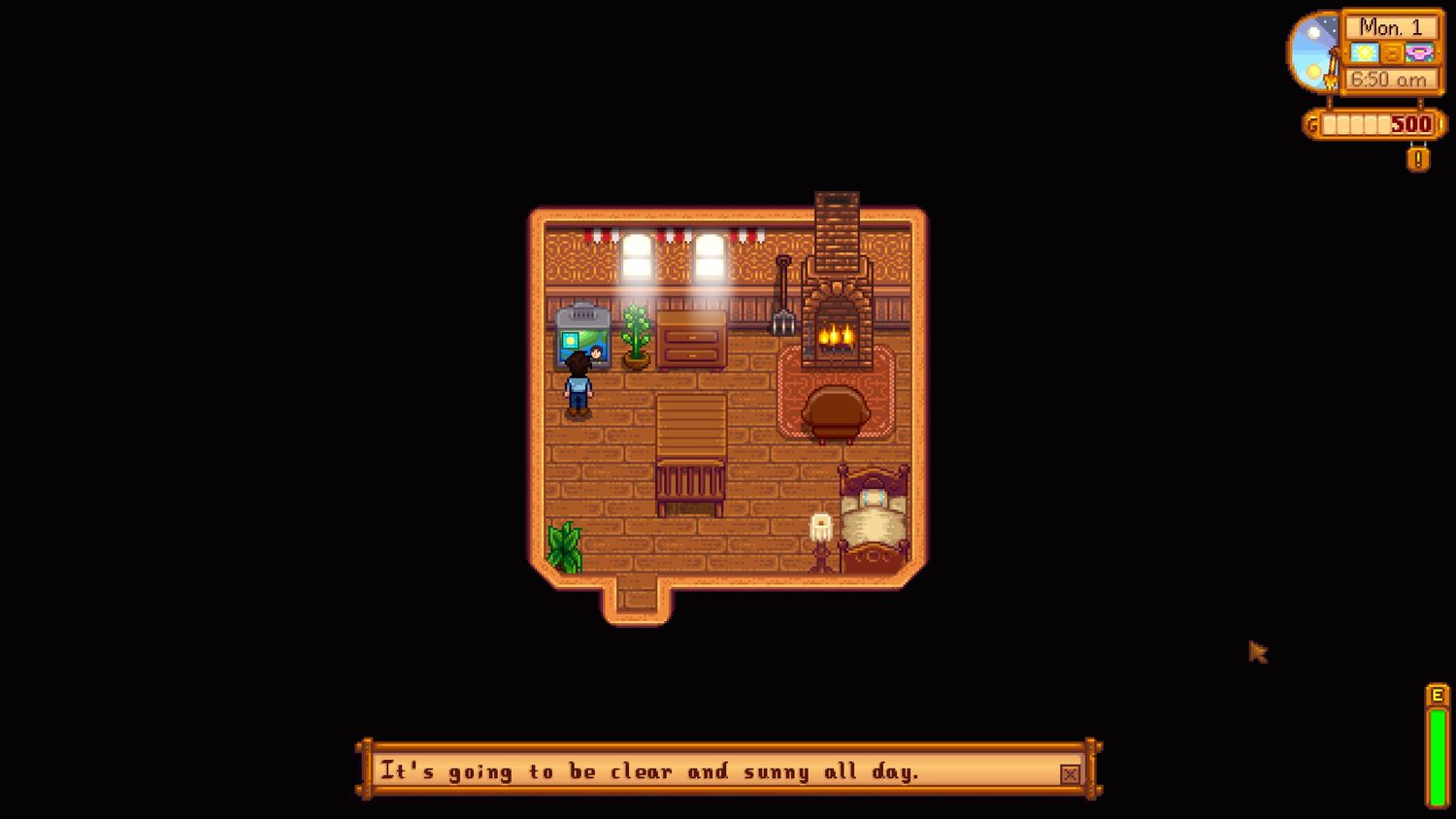 Casi todos los elementos de Valle stardew tiene alguna utilidad, así que intenta encontrar actividades para ocupar tu tiempo. Cualquier recurso que recojas de las minas puede ser útil más adelante cuando necesites mejorar tus herramientas, el pescado siempre se puede vender por oro extra y siempre vale la pena consultar el tablón de anuncios de la ciudad para ayudar a uno de tus aldeanos con una tarea. En resumen, lo ideal sería meterse en la cama a medianoche sin que quede prácticamente energía en el medidor, incluso si pasó el día simplemente limpiando las malas hierbas.